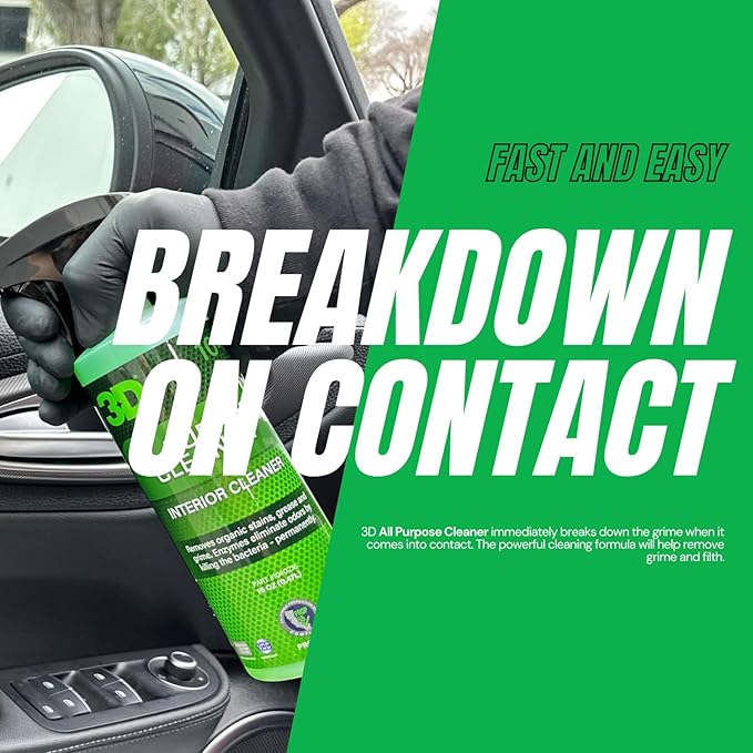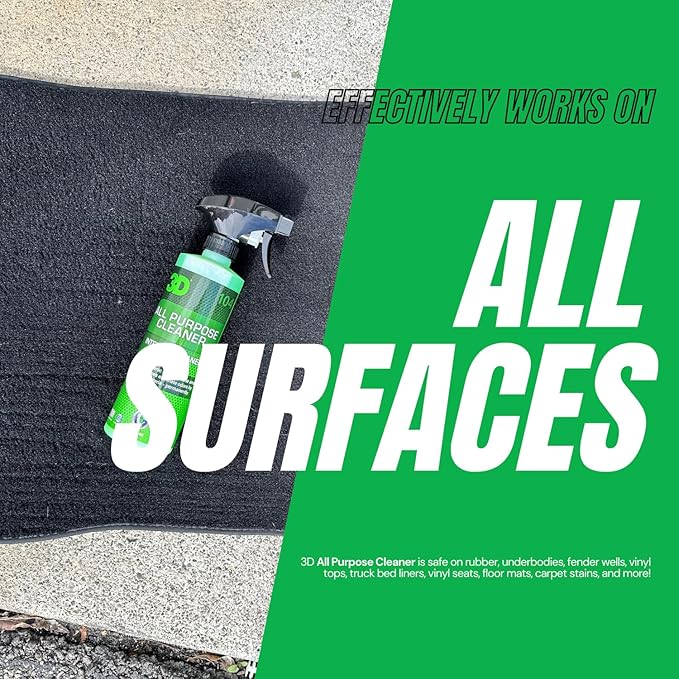- Next-Level All Purpose Cleaning Power: 3D’s All Purpose Cleaner isn’t just another product. It’s engineered with high-grade ingredients to dissolve dirt, grease, oil, and grime on nearly any surface—leather, vinyl, rubber, plastic, fabric, and more