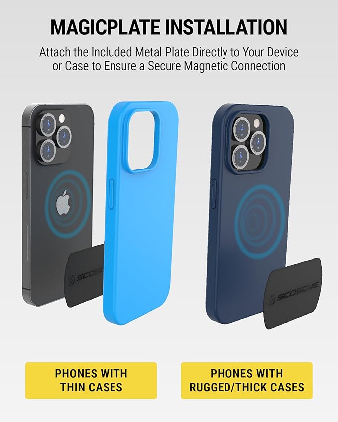 - Buy With Confidence: Conveniently mount your phone on your car dashboard with the Scosche MagicMount Dash. Includes a metal MagicPlate, protective film for phone safety, and a user manual with optimal placement instructions. Backed by Scosche's lifetime tech support and a limited 3-year warranty