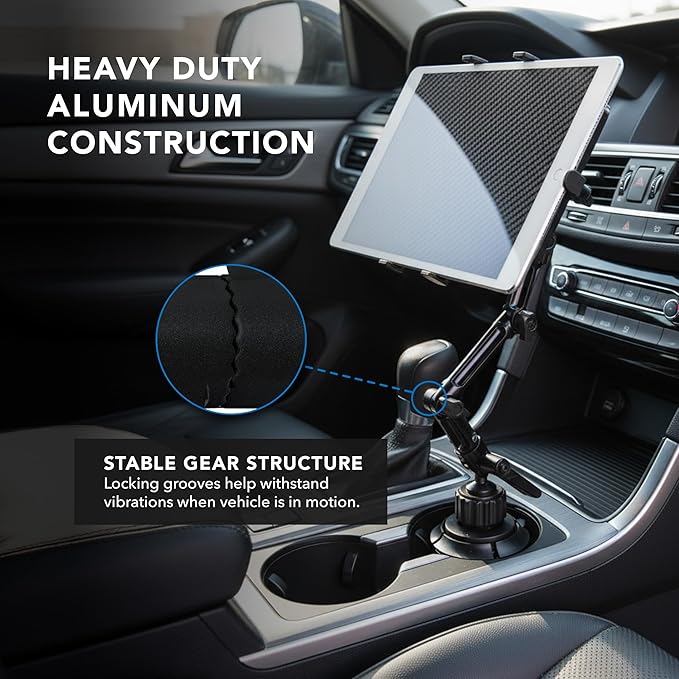 Mount-It! Premium Cup Holder Tablet Mount Fits Vehicle Cupholders 2.75"–3.5" in Diameter, Adjustable Tray for 7"–11" Tablets, Heavy-Duty Aluminum Arm, Full Motion Swivel & Secure Lock Cars Trucks SUVs