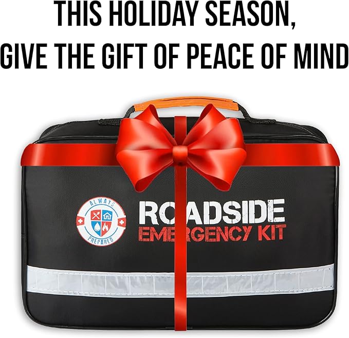 - ULTIMATE ROAD SAFETY KIT: Stay protected and secure with our 125-piece premium roadside emergency car kit. This emergency road kit for your car includes a headlamp, a first aid kit, and more, ensuring you’re prepared for any roadside emergency.
