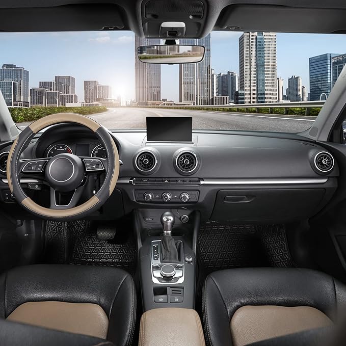 - ARMOR UP YOUR CAR INTERIOR: The durable and easy-to-install steering wheel cove is the premier option for covering an old or worn original factory steering wheel. The delicate splicing design adds texture to the interior of your car.