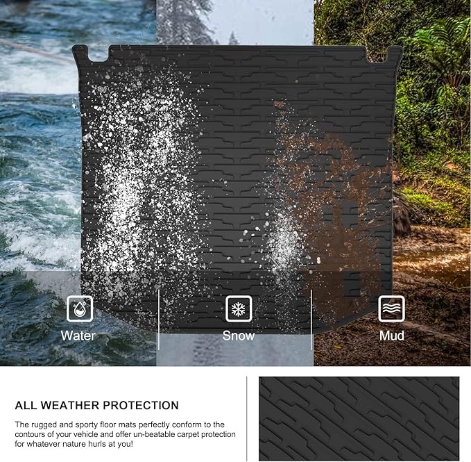 - All Weather Protection: Rugged and sporty floor mats perfectly conform to the contours of your ride and offer un-beatable carpet protection for whatever nature hurls at you