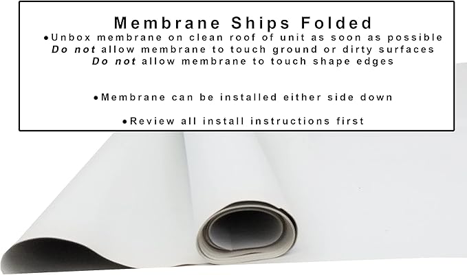 - MEMBRANE SHIPS FOLDED Depending on size of kit you will get one or two boxes (glue / membrane) - Remove membrane from box as soon as possible onto clean roof of unit. DO NOT allow membrane to touch ground or dirty surface DO NOT allow membrane to touch sharp objects or surfaces Membrane may be installed with either side facing the glue. Best when installed in air temperatures over 50 deg F (10 deg C) classAcustoms Adhesive is a fast drying Water Based Acrylic Adhesive