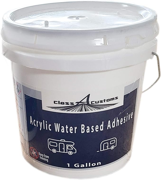 - KIT INCLUDES 1 Gallons of classAcustoms Acrylic Water Based Adhesive - COLOR White - COVERAGE 160-200 sq ft/gal (1side @ 8-10 mil) - May be applied by spray, roll coating, or by brush.