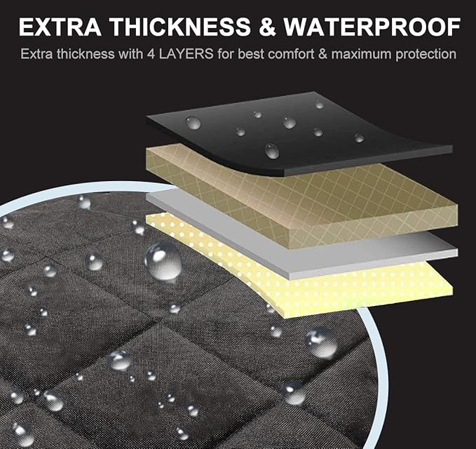 - 【WATERPROOF & SCRATCHPROOF】: Asfrost dog seat covers for cars bucket seats are made of 600D Oxford fabric + PVC waterproof coating, 4 layers of protector keep the front seat dog cover dry and clean, which will also make your pets feel more comfortable. Quilted car front seat cover prevents your car from any dirt, liquid, scratches, hair & fur, etc. No more endless sweep.