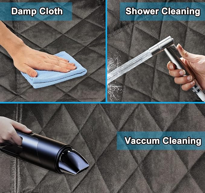 - 【EASY TO INSTALL & CLEAN】: Easy to install with quick-release clips. Just snap the buckle straps around your car’s headrests and tuck in the seat anchors. In case your pet dirt the seat cover, just a damp cloth or vacuum it. Of course, this pet car seat cover dog hair cover for the car is machine washable! (Use Gentle Cycle)