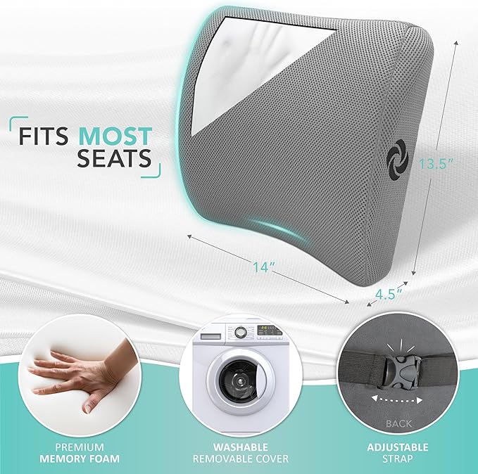 - ๐๐ฟ๐ถ๐๐ฒ ๐ฆ๐บ๐ฎ๐ฟ๐ - Compact profile and adjustable strap keep this lumbar support pillow for car securely positioned to reduce fatigue on commutes and road trips