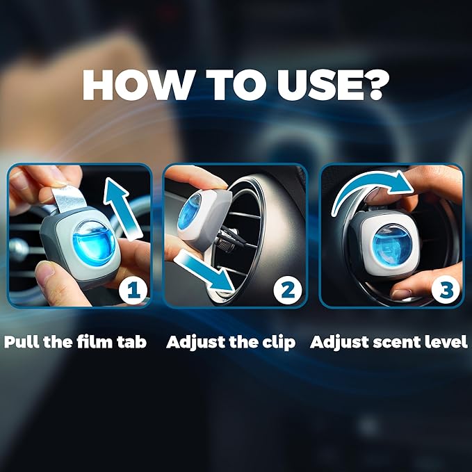 - Clips easily onto car air vent and stays firmly, adjust scent level