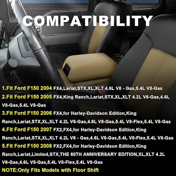 - COMPATIBILITY - Compatible with 2004-2008 Ford F150(Designed For Models With Floor Shifter & "Pebble" (Dark Tan / Beige) Interiors)