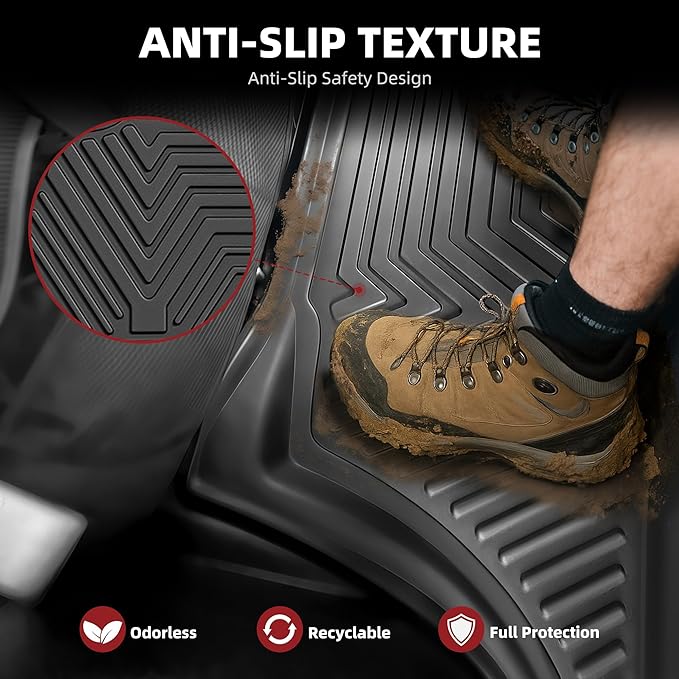 - Safe & Durable: YITAMOTOR floor liners are made with odorless TPE material, ensuring safety even in extreme hot weather. The product contains no latex, cadmium, lead, or any harmful PVC’s. High tensity TPE material not only provides a superb feel and extreme wear-resistance, but also remains flexible in even the harshest of cold weather.