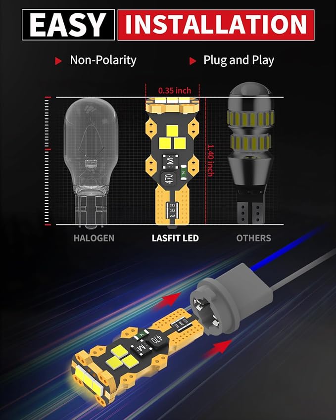 - 【CAN-BUS Ready】LASFIT 921 T15 led bulbs have built-in CANBUS system, compatible with 98% vehicles, preventing from error code, odd flickering, and radio interference. However, for some sensitive models of Audi/BMW/MB/Jeep/VW/Ram, they may still flicker or throw error code. If you have one of the above vehicle, please contact us to double check before purchasing.