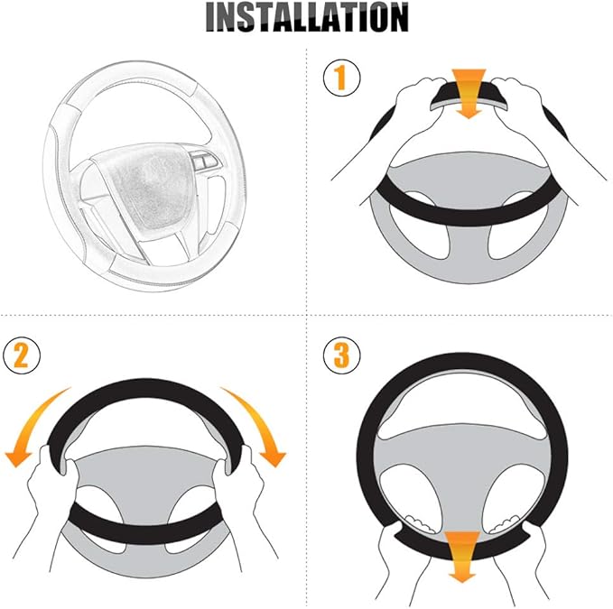 - 【Ready to Install】Simply warm up the steering cover for munites, and slip it on your steering wheel. Installation is fairly easy, any adult can install this steering wheel cover. Suitable for small size steering wheels with outer diameter of 14"-14 1/4".