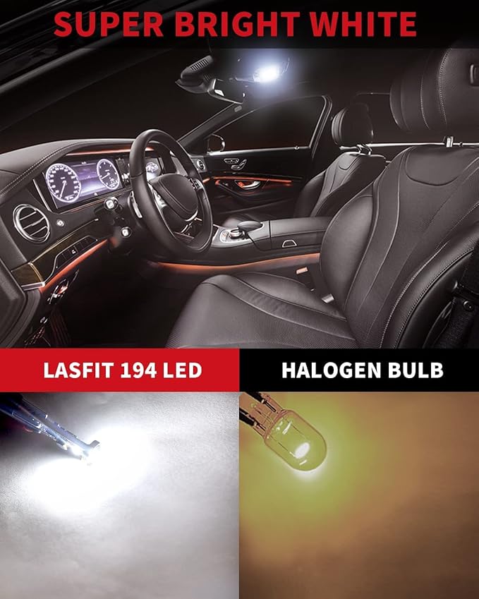 - 【CAN-BUS Ready】LASFIT 194/168 led bulbs have built-in CANBUS system, compatible with 98% vehicles, preventing from error code, odd flickering, and radio interference. However, these bulbs still can't prevent some Mercedes-Benz, VW, Jeep(when the replacement for license plate light and parking light) from throwing an error code.