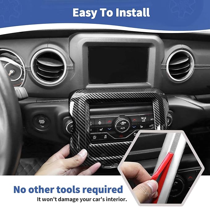 - [HIGH QUALITY] RT-TCZ for Wrangler JL Display Trim Cover Black Carbon Fiber made of high-quality ABS plastic and used polish process for deformation protection, anti-corrosion, and years of trouble-free use