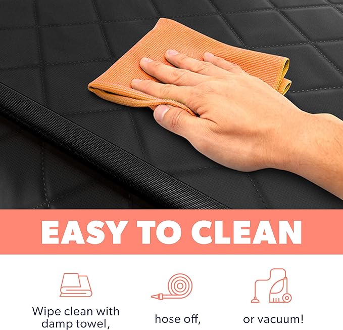 - EASY-TO-CLEAN MATERIALS – Active Pets dog front seat cover is made exclusively from super easy to clean materials! Crafted with a top layer of premium 600D Oxford waterproof cotton and a middle layer of Oxford 210D with waterproof coating, your seats will remain clean no matter what. In case your pet has dirtied the seat cover, just wipe with a damp cloth or vacuum it and it will be new again in a minute!