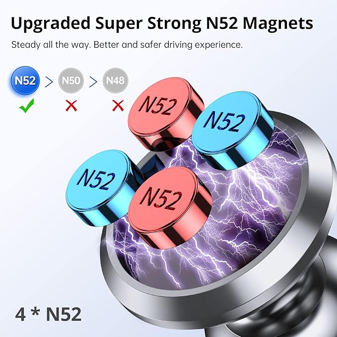 - ▶Super Strong N52 Magnets◀: with upgraded powerful N52 neodymium magnets, Syncwire magnetic car mount ensure a secure grip to your iPhone, Android Smartphones.