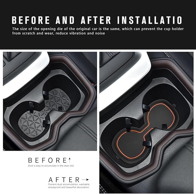 - 【DECORATE YOUR CAR】Color: Orange Trim. 3D Cup Holder Inserts for Toyota RAV4 Accessories 2019-2025 give a new look to your vehicle interior with these cup holder inserts on. Adds a nice pop of color. Great way to keep car clean. Protect your car cup holders from dirt and scratches. It will reduce rattling sound caused by small things like keychain or coins while driving.