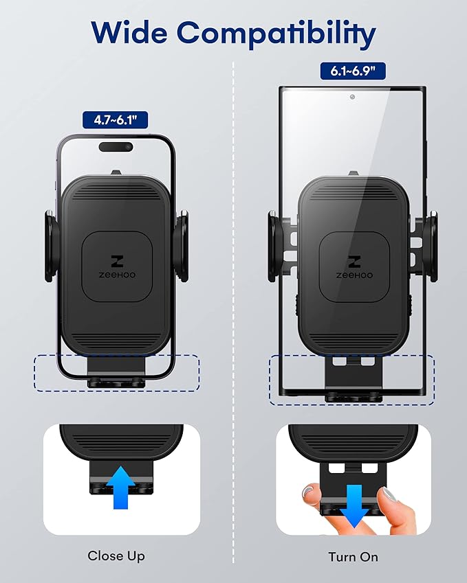 - Special Feature : Automatic Clamping, Power-off Delay, Wireless Charging, Strong Suction Cup, Double-Lock Vent Clip