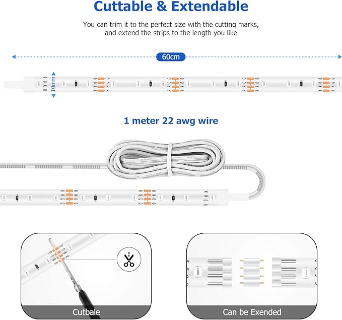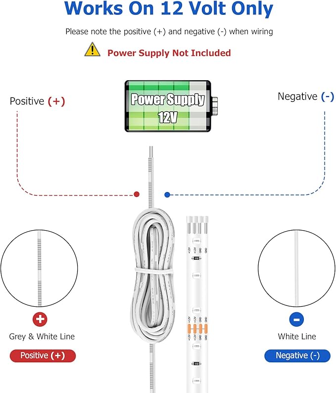 - EASY TO INSTALL. these automotive light strips come with 1m 22awg wire, you can install these them anywhere as long as the power supply has enough current at 12v, and wiring the positive and negative correctly, power supply not included.