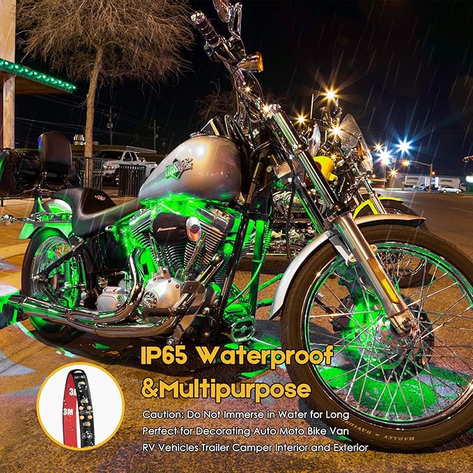 - SUPER BRIGHT, MULTI-PURPOSE. the short 12 volt led strip light has a length of 60cm/24-inch, brightness of 680lm, emits ultra bright green (515nm-525nm) lights, perfect for automotive interior ambient lighting, gives a plenty bright lights inside your vehicles, such as under dash seat or truck bed as footwell lighting, under hood grille accent lights or underglow light on your motorcycle etc.