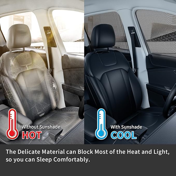 - 【Durable & Breathable Mesh Material】Crafted from premium 160GSM mesh fabric, this car window curtains offers excellent heat and glare reduction while allowing air to circulate. Ideal for everyday use, road trips, camping, and more