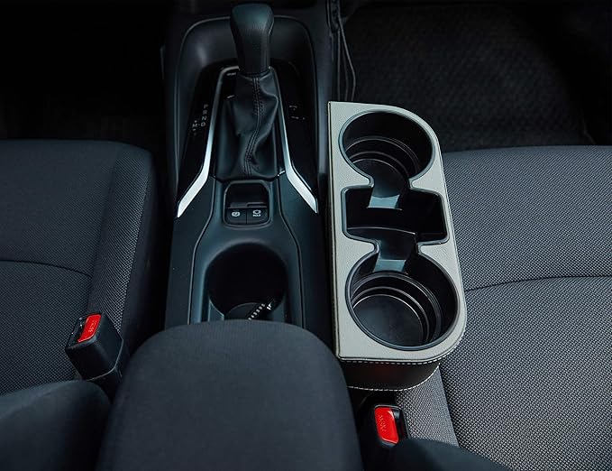 - Adds Extra Storage – 2 Cup Holders & A Side Pocket. It can be used between front seats or front seat & center console.