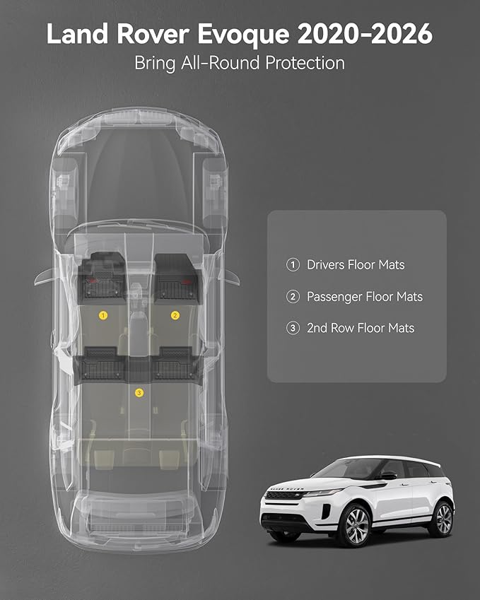 - ODORLESS AND NON-TOXIC: The 2020 2021 2022 2023 2024 2025 2026 Range Rover/Land Rover Evoque floor mats are made with non-toxic and odorless TPE material. No foul smell will be produced even in high temperature. Bring you and your families a safer and more comfortable interior car environment.