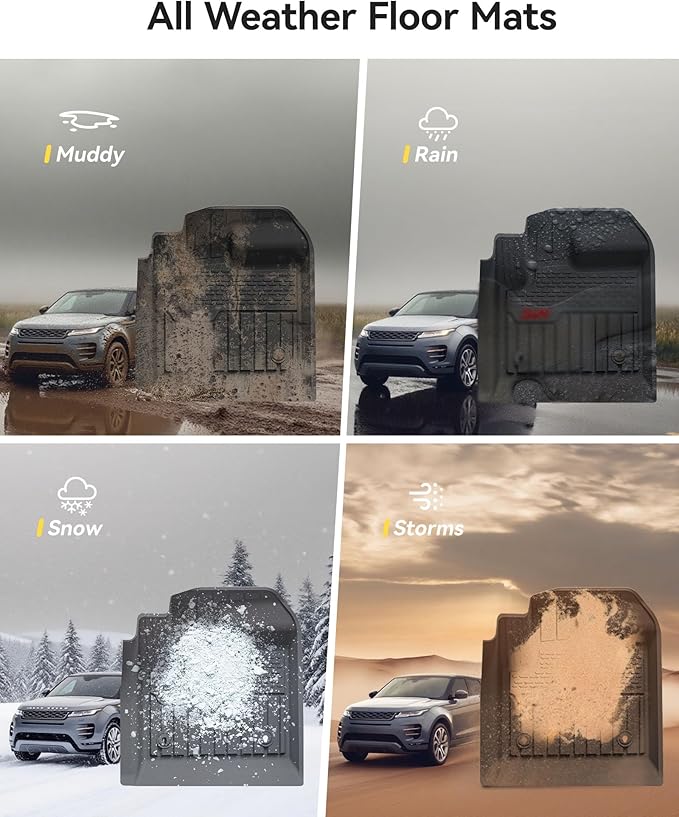 - ALL SEASONS AND DURABILITY: These durable Range Rover Evoque car mats are easy to install and can be used all weather, which are stain-resistant, waterproof and anti-slip, preventing your carpet from rain, slush, snow, mud and protect the floor carpet during a typical winter or summer.