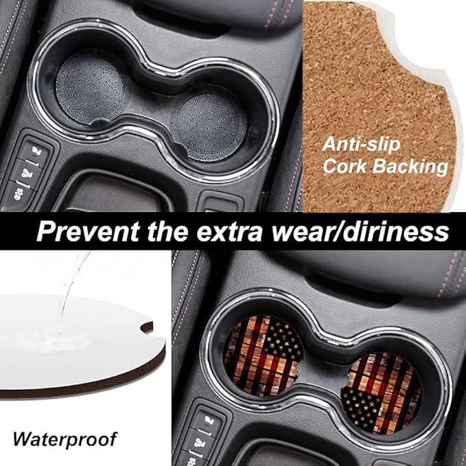 Old Wood USA Flag Absorbent Cup Holders Car Coasters,Ceramic Stone Drinks Coaster Set for Women Man 2.56"(2 Pack)