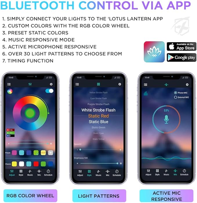 - 【3 Ways to Control】:With efficient bluetooth connect your APP both Android and Iphone,you can customize light effects and access 16 million RGB colors or you can just select your ideal colour with your finger by wireless remote,the control box