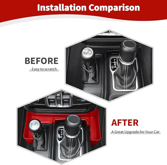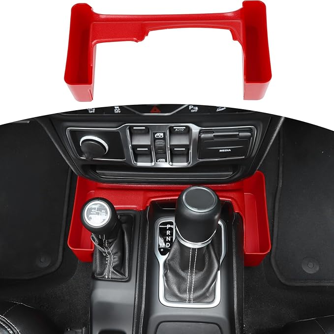 - Sturdy & Durable - RT-TCZ for jeep tray is made out of high quality Red ABS plastic. Sturdy solid enough and not easy to deform under pressure. 100% brand new gear shift console storage tray, more original car feeling