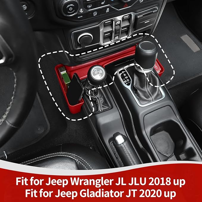 RT-TCZ for Jeep JL Shifter Storage Tray, Center Console Side Pocket for Jeep Wrangler JL JLU Gladiator JT 2018 up Red Interior Accessories