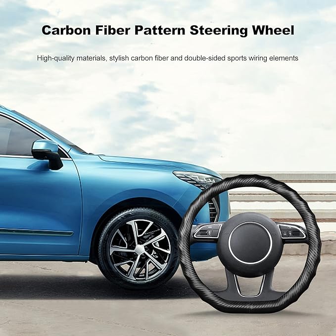 Ergocar Carbon Fiber Material Steering Wheel Cover Anti-Slip Breathable Sweat Absorbent Fashionable Sport Steering Wheel Sleeve for D-Shaped Diameter 15"(37.5-38cm)-Black Ripple