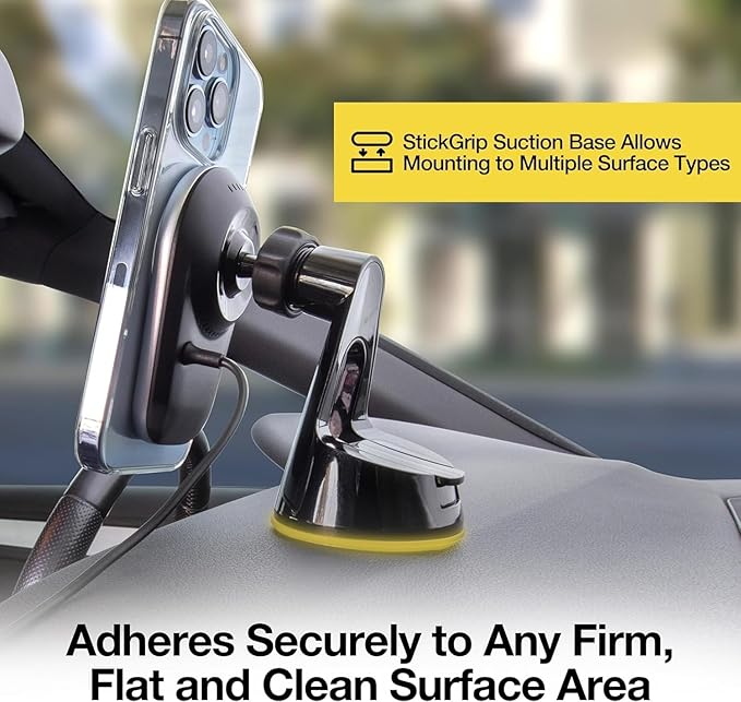 - VERSATILE AND SECURE:Our Car Phone holder offers versatile and secure magnetic mounting. The StickGrip suction cup adheres to almost any flat suface for reliable hold while the 4-Axis, 360-degree adjustable head provides convenient viewing from any angle.
