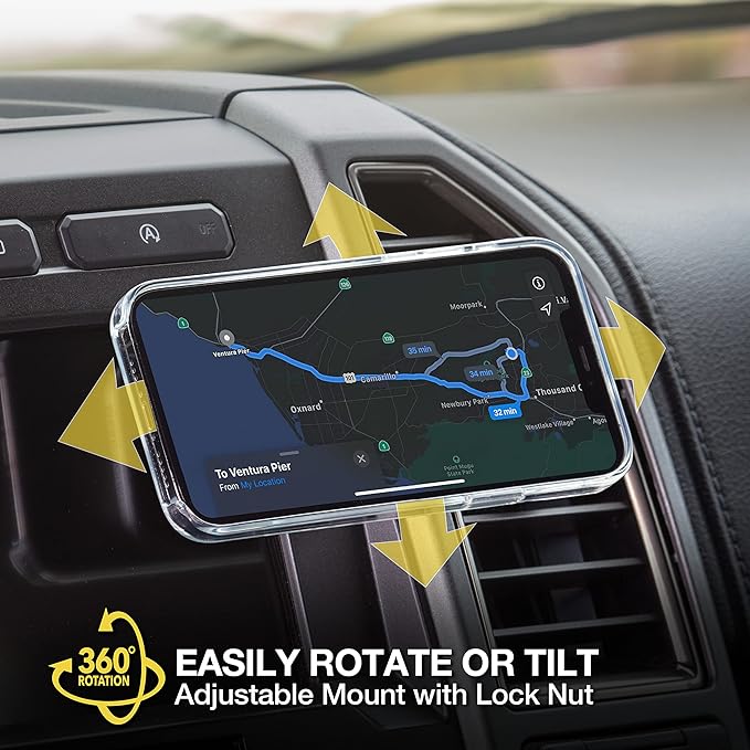 - OPTIMAL VIEWING ANGLE: The car phone swing arm mount head swivels and the dash/vent mounts all adjust to find the perfect viewing angle. Rotate the car phone dash/vent mounts 360-degrees to adjust or swivel the swing arm mount to find your perfect viewing angle of your mobile device.