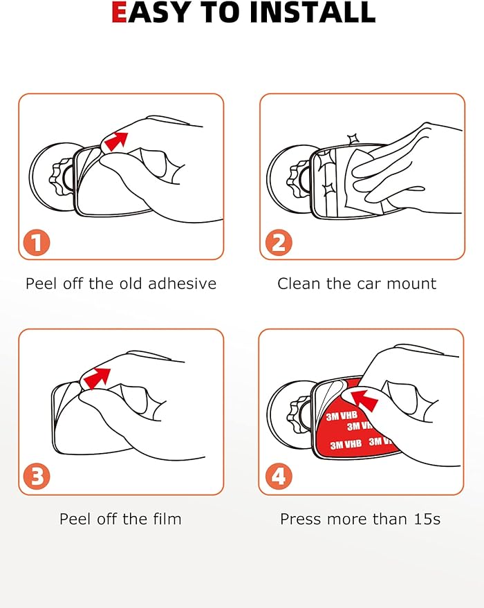 - Adhesive Curing Time – Allow the mount to rest for 24–48 hours after installation to ensure proper bonding strength before use.