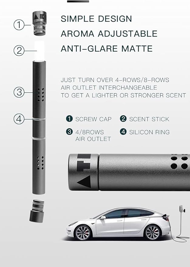 - ✅ New Upgrade! The package comes with 1 Air Freshener Capsule and 4 Scent Sticks.Only compatible with the Tesla Model 3 and Y **Not compatible with Tesla Model 3 (Highland)