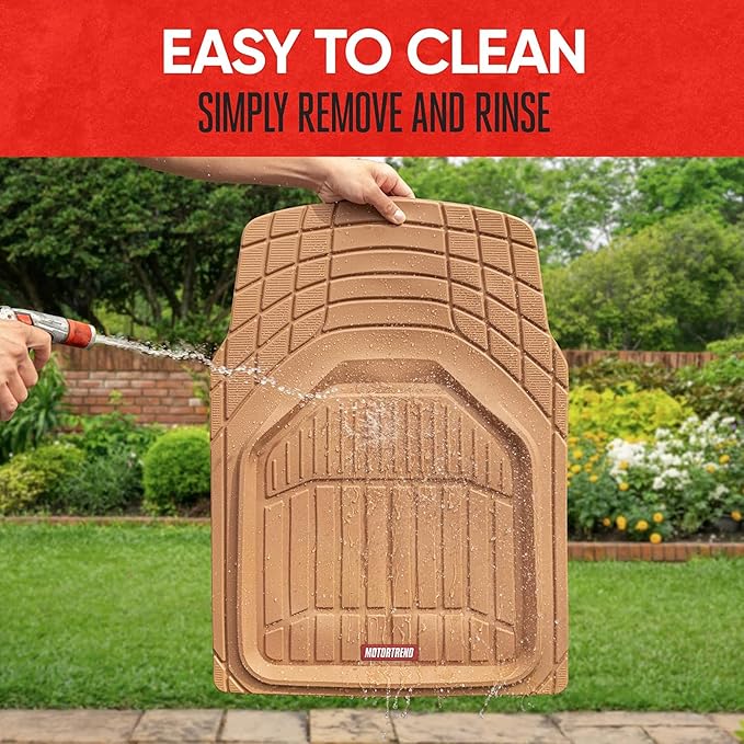 Motor Trend 943-BG FlexTough Defender Car Floor Mats -Next Generation Deep Dish Heavy Duty Contour Liners for Car SUV Truck & Van-All Weather Protection, Trim to Fit Most Vehicles Beige