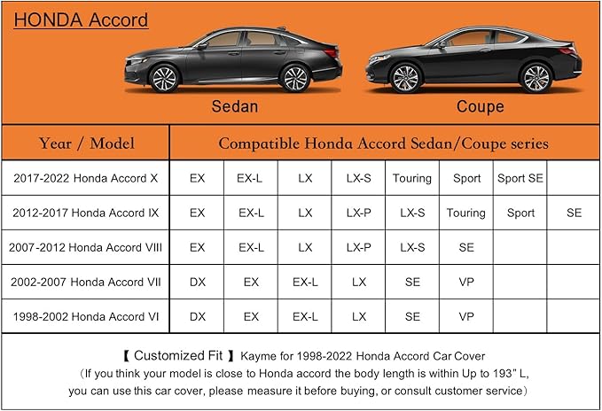 - 【Suitable for】-Customer fit for Honda Accord sedan/coupe(2001-2025). Come with a large enough portable bag to store your cover when you do not use.
