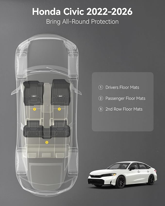 - PERFECT FIT: Custom fit design for Honda Civic floor mat 2026 2025 2024 2023 2022(Fit Hatchback/Si), edge to edge for maximum coverage and protection with TPE (thermoplastic elastomer) material which ensures your more strength, resilience, durability and elasticity.