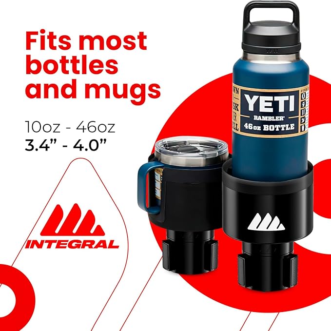 [Upgraded] Integral Ultimate Car Cup Holder Expander - Adjustable Base - Organizer & Expander for Vehicles - Compatible with Mugs, Yeti 14/24/36/46oz, Rambler, Hydro Flasks 32/40oz, 3.4"-4.0" Bottles