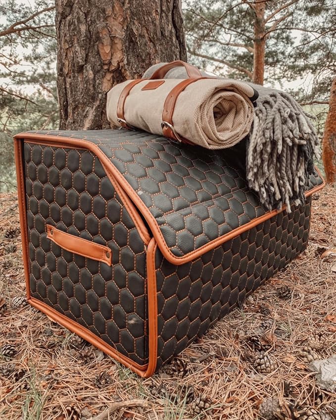 - GIFT-READY STYLE. A sleek choice for gifts, gift ideas, or men’s car gifts. Elegant black-brown finish with hand-stitched detailing complements any car interior while keeping the trunk organized year-round.