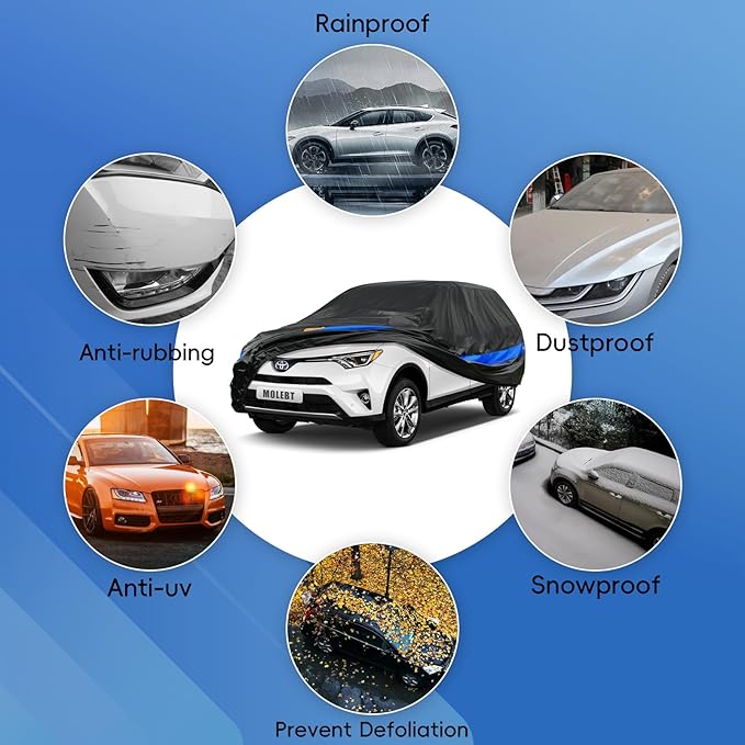 SUV Car Cover Waterproof All Weather for Automobiles, Universal Fit Hyundai Santa Fe/Tucson, Jeep Cherokee, Toyota RAV4, Volkswagen Tiguan, Ford Edge, Nissan Murano, Mazda CX-5 etc.