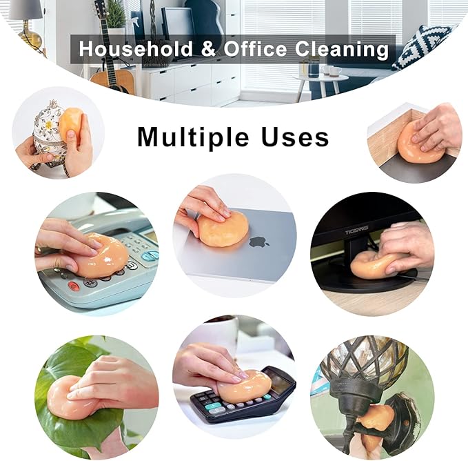 - 【Multiple Uses】Auto gel is also useful for home and office, PC keyboard clean and other rugged surface cleaning such as printer, cell phone, calculator, TV remote, computer cleaner and furniture. The suitable surface must be no water and the magic cleaning mud would stick to it