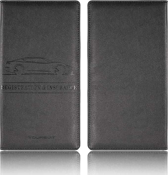 TOURSUIT Car Registration and Insurance Card Holder, Vehicle License Document Glove Box Compartment Organizer, Interior Car Accessories for Women Men Teens (Black)