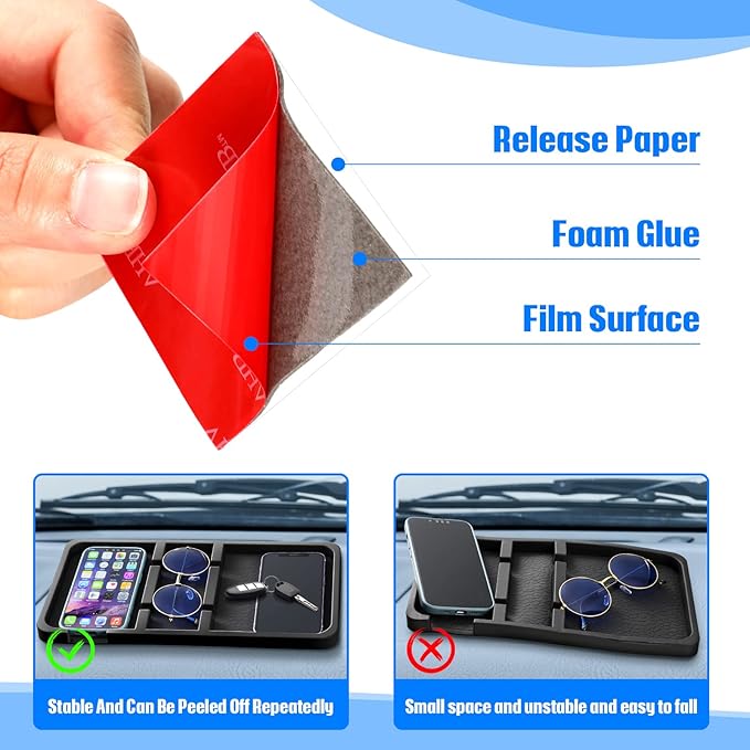 - What's Included: there is 1 extra large black non slip pad for car and 6 seamless sponge double sided tapes, the installation is simple by using the multi functional sticky dashboard, and the product itself has an effective adsorption capacity; What's more, due to the different materials of the dashboard of each vehicle, 6 non marking sponge double sided tapes make you more comfortable and completely avoid the hassle of falling, with good flexibility, easy to clean and keep dry