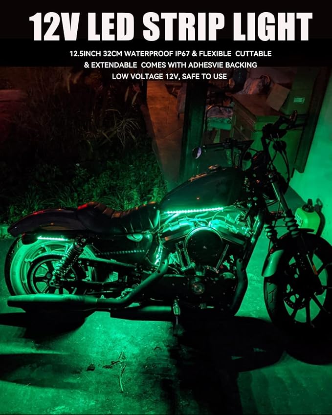 - Included Components : 4-pack x 32cm Led Light Strips for Cars Green