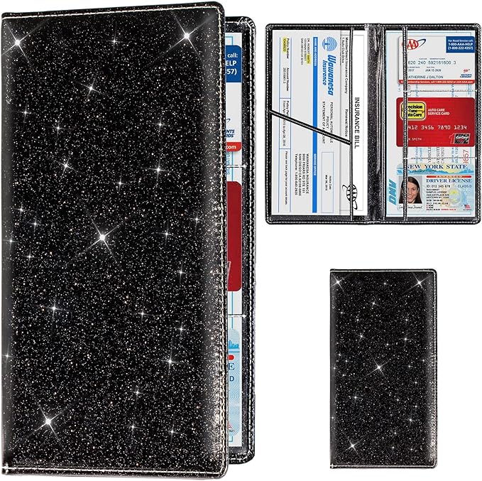 TOURSUIT Car Registration and Insurance Card Holder, Vehicle License Document Glove Box Compartment Organizer, Interior Car Accessories for Women Men Teens (Glitter Black)