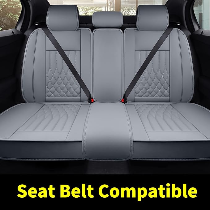 Aierxuan Rear Car Seat Covers with Waterproof Leather, Automotive Vehicle Cushion Cover Universal Fit for Most Cars (Black-Grey, Rear seat Cover)
