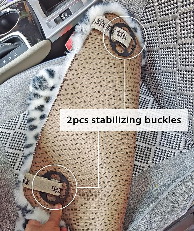 - High-quality thick short artificial rabbit fur fabric, very soft to the touch, plush does not shed hair and does not fade, the middle layer is shock-absorbing memory foam, which better increases the softness and elasticity of the car seat, and the bottom layer is non-slip silicone bottom , It can be firmly attached to your leather seat without slipping, and is also equipped with 2 fixed buckles to ensure that it will not fall during use
